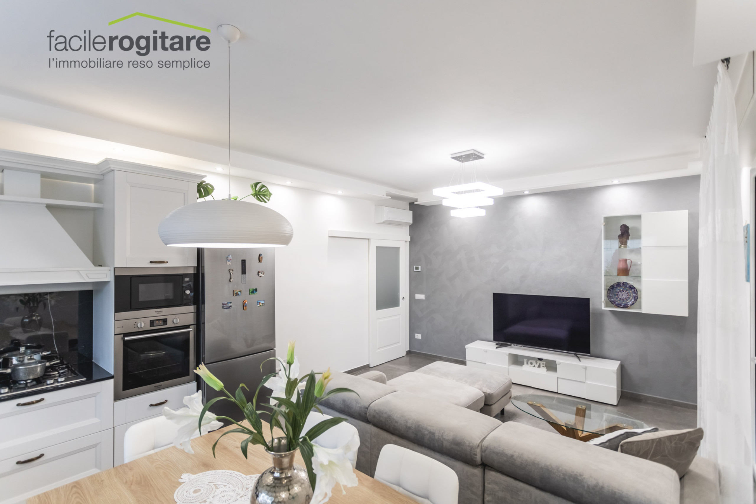 È possibile lasciare la suddivisione attuale, sfruttando gli spazi per le esigenze della famiglia, oppure riunirli in un'unica abitazione, ristrutturando con calma il bilocale.