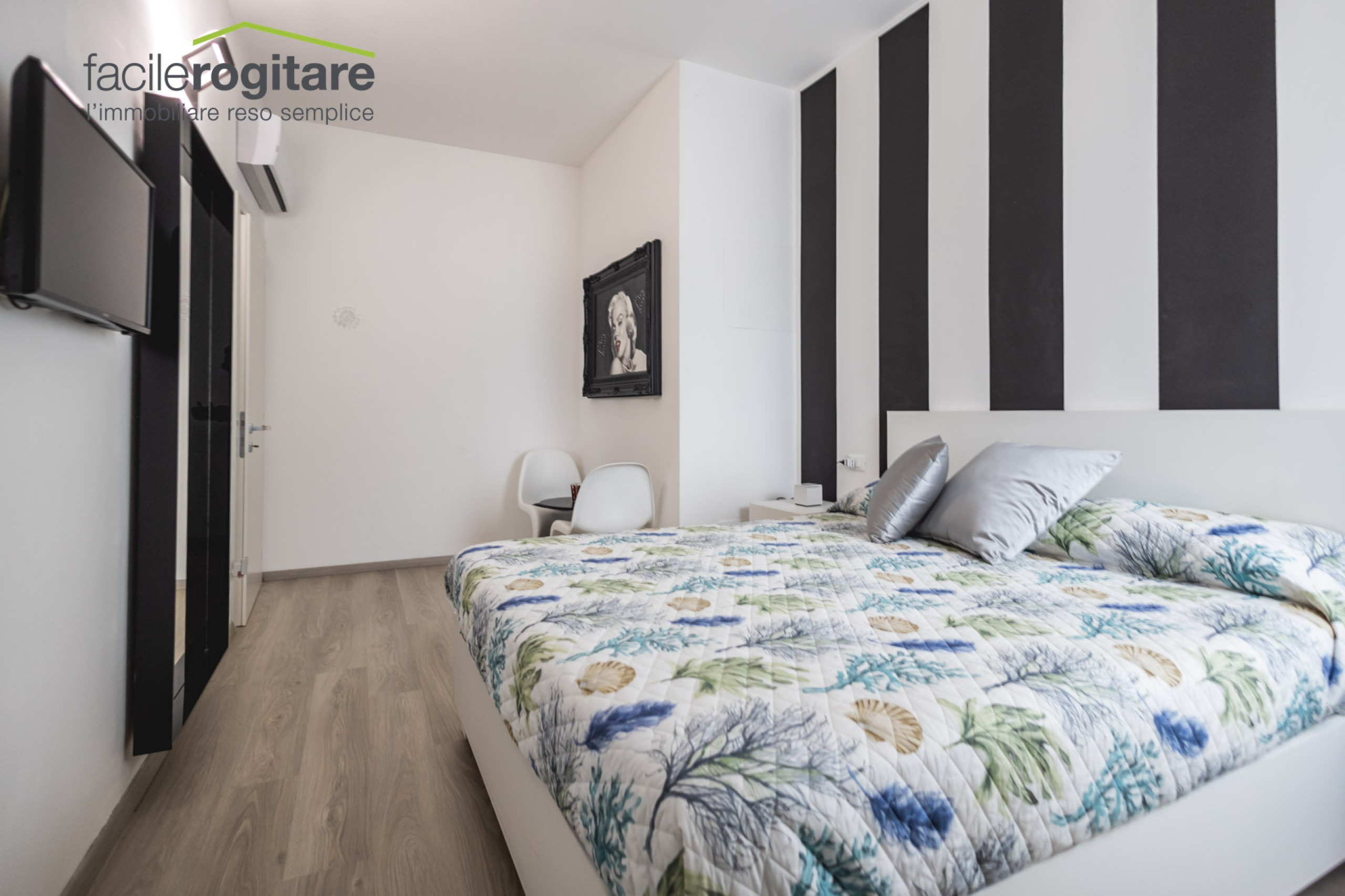 La zona notte offre due spaziose camere matrimoniali, ideali sia per la quotidianità che per accogliere ospiti con stile, oltre a un bagno elegante e funzionale. Completano la proprietà un vano condominiale per bici o moto e, su richiesta, la possibilità di acquistare un posto auto coperto presso il Palazzo dei Congressi a pochi passi, al prezzo di € 35.000.