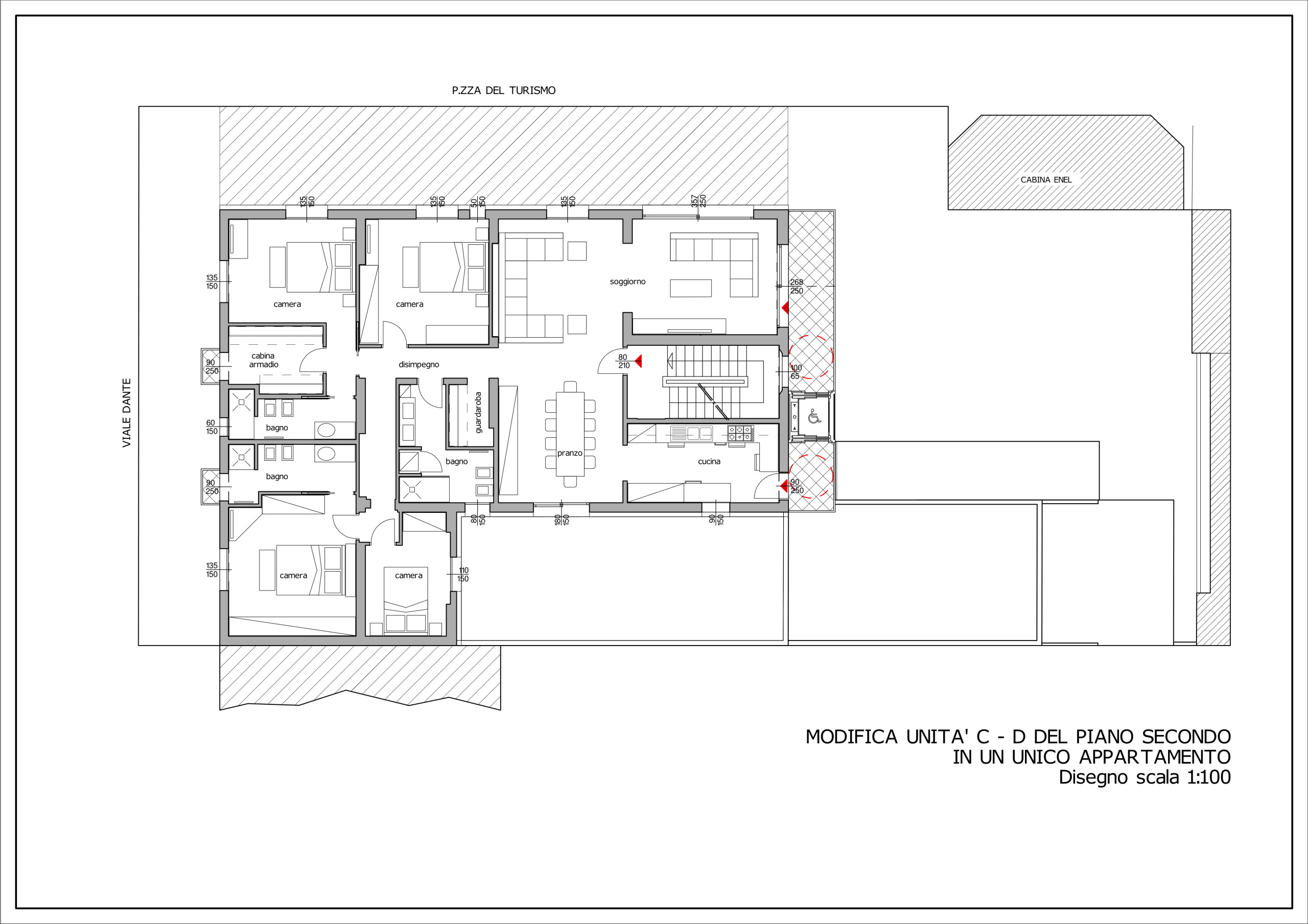 Gli spazi interni sono ampi e armoniosi: un ingresso elegante introduce a un doppio salone con sala da pranzo e a una cucina abitabile pensata per la convivialità. La zona notte accoglie quattro camere matrimoniali, di cui due con servizi privati e cabina armadio, garantendo a ciascun ambiente il massimo del comfort e della privacy. A completare il tutto, ampi balconi che accompagnano gli ambienti e regalano scorci unici.