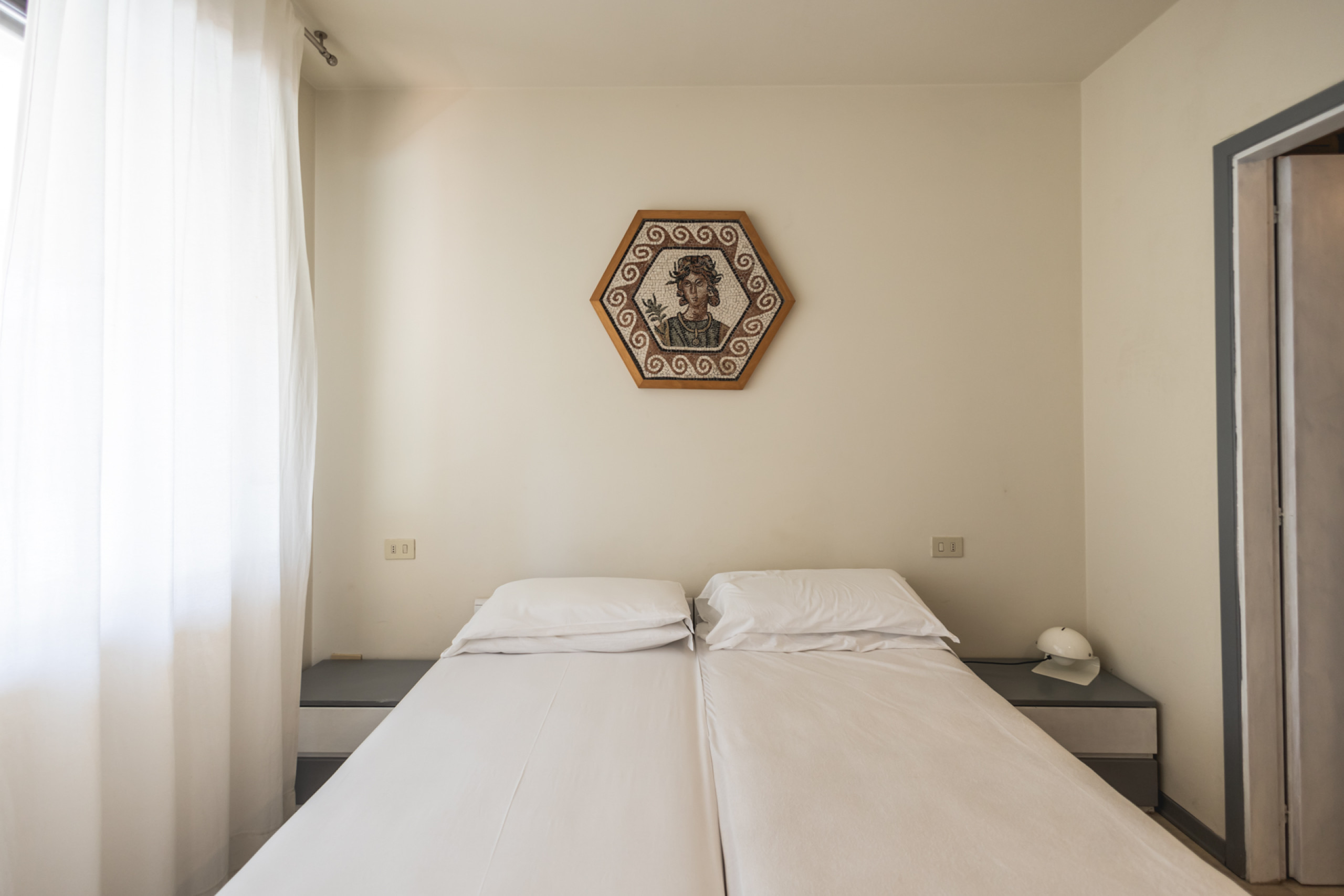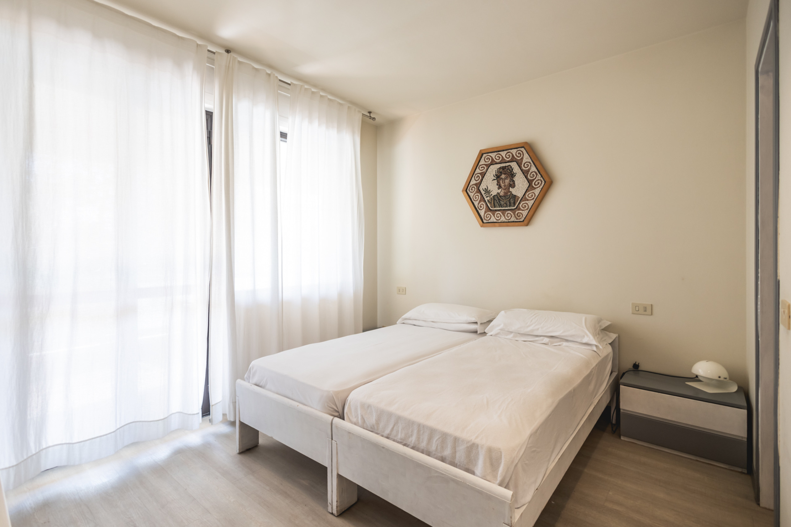Le due camere matrimoniali sono grandi, ariose, e ciascuna ha il suo bagno privato finestrato: un dettaglio prezioso che garantisce praticità e privacy, anche quando decidi di condividere la casa con ospiti o famiglia.