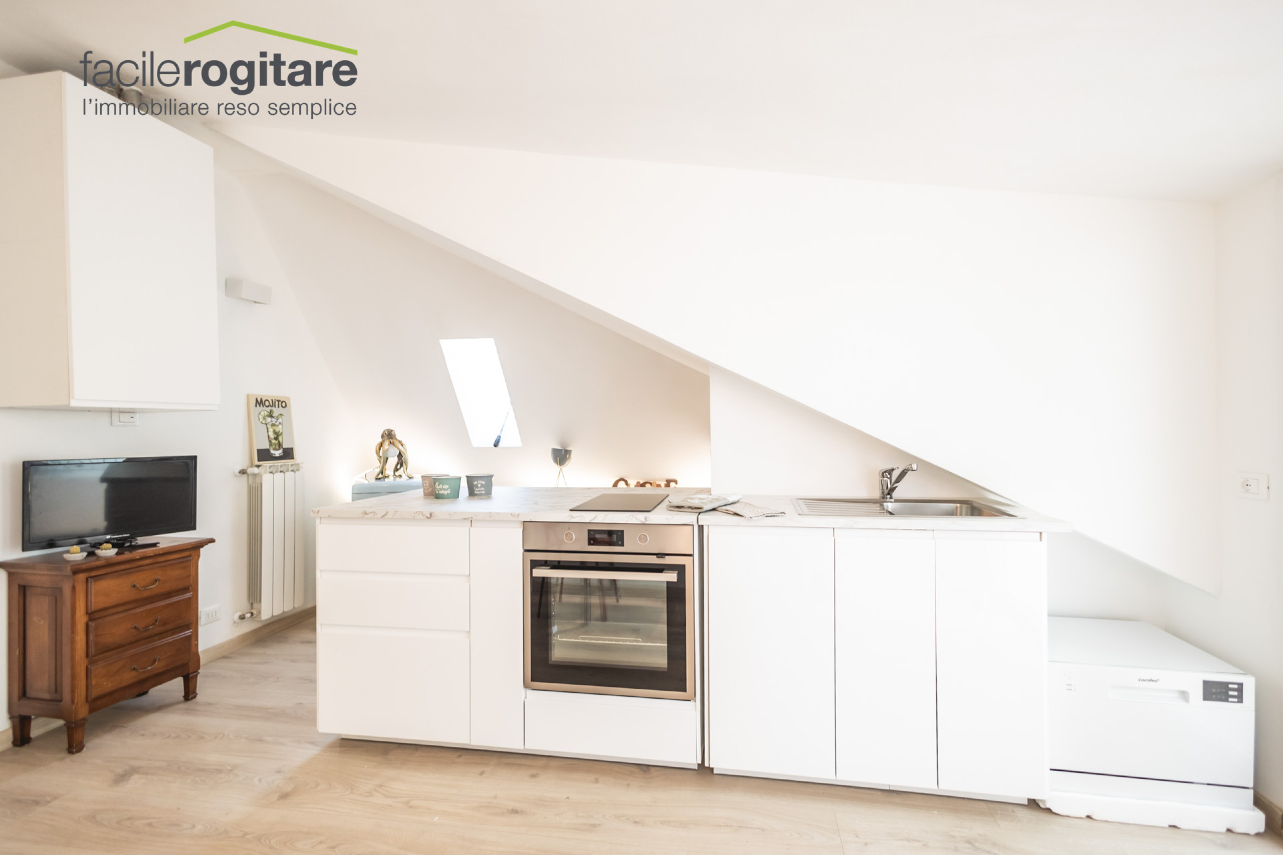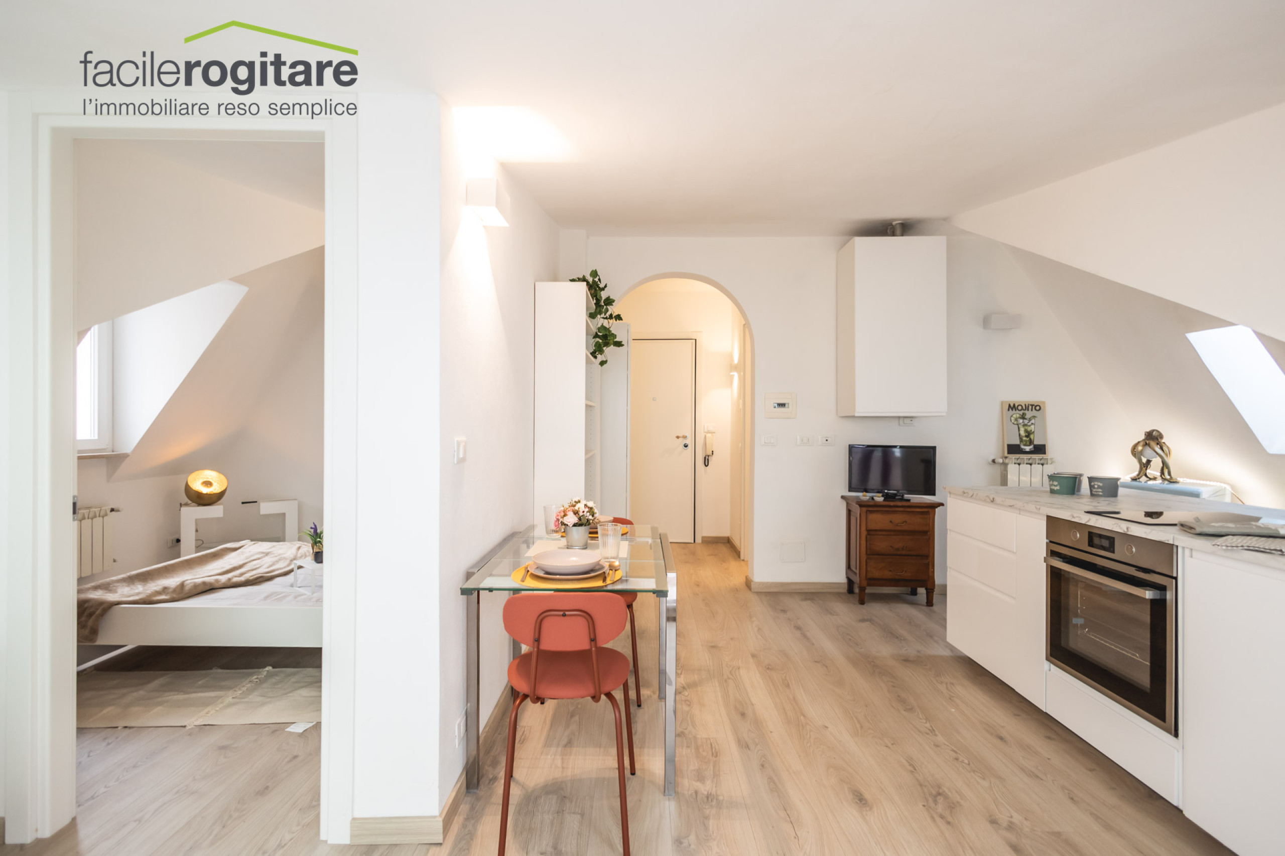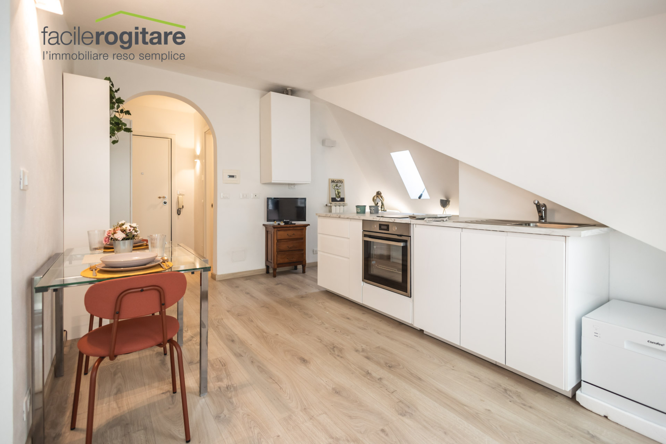 L’immobile è stato recentemente ristrutturato con attenzione ai dettagli e finiture di alta qualità, che conferiscono agli ambienti un design moderno e accogliente. Appena varcata la soglia, ci si trova in un luminoso open space con zona giorno e angolo cottura, impreziosito da una pratica penisola che definisce gli spazi e rende l’ambiente ideale per momenti di convivialità e relax.